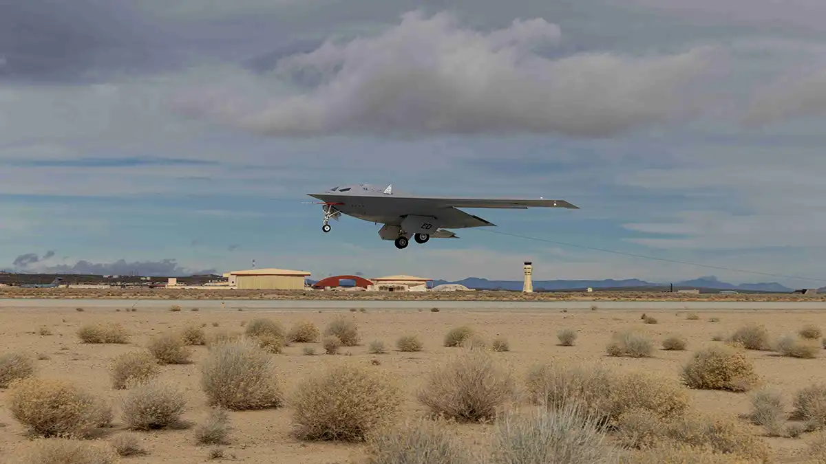 O B-21 realizou seu primeiro voo em 10 de novembro de 2023, decolando da Planta 42 da Força Aérea em Palmd by Northrop Grumman. Acompanhado por um caça F-16, o voo marcou um marco significativo no programa Long Range Strike Bomber (LRS-B). Desde então, pelo menos dois voos de teste adicionais foram confirmados, com o programa avançando em testes de solo e de motor.